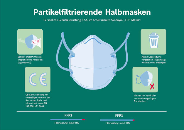 Die verschiedenen Maskenarten wurden sorgfältig untersucht und es wurde sichergestellt, dass die Infografiken alle wichtigen Informationen enthalten.