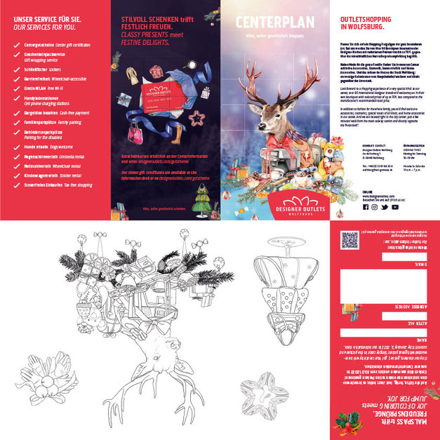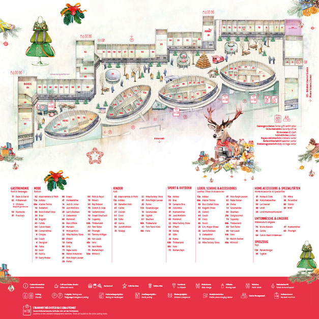 Der Plan wurde nicht nur im ganzen Gelände verteilt, sondern auch in Form von Flyern ausgegeben. Dies ermöglichte es den Besuchern, den Centerplan jederzeit zur Hand zu haben und sich problemlos durch das Outlet zu bewegen.