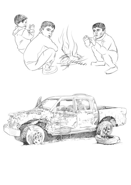 Für ein Projekt zum Thema Flüchtlinge hatte ich die Idee, eine Reise-Illustration zu gestalten. Die Illustration soll verschiedene Geschichten von Flüchtlingen visuell darstellen und